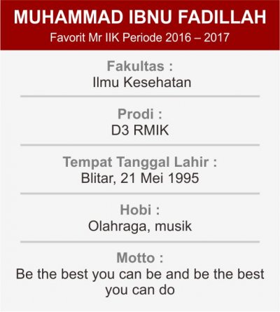 Saya merasa senang karena telah dinobatkan menjadi juara favorit. Tak lupa saya juga bersyukur atas pencapaian saya saat ini. Semua ini tidak lepas dari dukungan teman-teman saya banyak memberikan support dan masukan kepada saya hingga akhirnya saya berhasil menjadi juara favorit. Dengan mengikuti kompetisi ini saya mendapatkan banyak pengetahuan dan pengalaman baru selama masa karantina, seperti cara bersosialisasi, cara berpenampilan dan berkomunikasi yang baik. Setelah pencapaian ini, saya akan berjuang dan terus berjuang untuk meraih prestasi yang lebih gemilang. Harapannya untuk acara ini semoga semakin berkembang dan lebih meriah dari tahun ke tahun serta semakin banyak peminatnya. Sukses selalu untuk IIK.