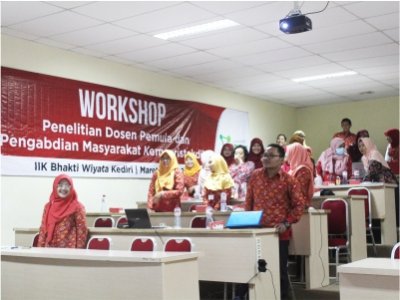 Peserta dan Pembicara berfoto bersama seusai acara workshop.  Para dosen internal IIK yang mengikuti workshop PDP.  Pemaparan materi PDP oleh Bapak Dr. H. Moch. Agus Krisno Budiyanto, M.Kes.