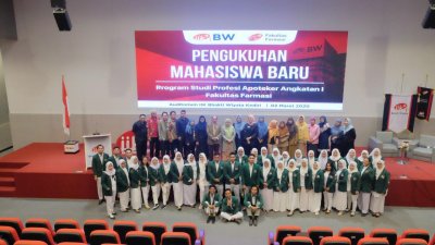 Fakultas Farmasi IIK BW resmi mengukuhkan 40 mahasiswa baru progam stidi profesi Apoteker (PPA) Angkatan 1 T.A 2019/2020 di ruang Auditorium gedung Adipadma lantai 6 IIK BW, Senin (02/03/2020). Prosesi pengukuhan mahasiswa baru prodi profesi Apoteker IIK BW ini juga diisi acara kuliah pakar dengan narasumber Ibu Prof. Dr. Umi Athiyah M. S., Apt. Dekan Fakultas Farmasi Universitas Airlangga sekaligus Wakil Asosiasi Perguruan Tinggi Farmasi Indonesia (APTFI). Beliau menjelaskan mengenai tantangan yang dihadapi profesi Apoteker yang harus mampu mengoptimalkan manajemen pengobatan. Sementara dihari kedua yang berlangsung di ruang Bhumi lantai 6 gedung Adipadma, hadir Ibu Dr.Yunita Nita, M.Pharm., Apt yang menyampaikan peran farmasi komunitas dimana seorang Apoteker selain dituntut mampu meracik obat juga harus mampu mengedukasi pasien terkait pencegahan. Dihari terakhir mahasiswa baru prodi profesi Apoteker mengikuti acara seminar motivasi bersama Bapak Tung Desem Waringin di Graha IIK BW.Selamat bergabung mahasiswa baru prodi profesi Apoteker IIK BW di Institut Ilmu Kesehatan terbaik di Indonesia. IIK BW: Developing Health Experts! IIK Plus: Siap mencetak lulusan luhur dalam berbudi Pekerti dan Unggul dalam Berkarya!