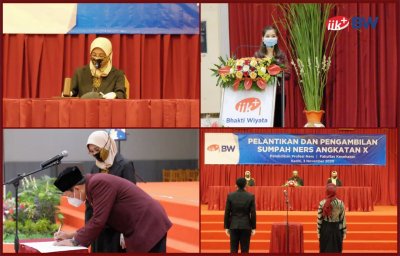 Ketua Program Profesi Ners IIK BW Ibu Sri Wahyuni, S.Kep.Ns.,M.Kep, menjelaskan dari 37 mahasiswa, 3 perwakilan mahasiswa mengikuti sumpah secara luring di Graha IIK BW. Selebihnya mengikuti secara daring dari rumah masing-masing. Aldilla Nur Sukma Trisnaini, S.Kep., Ns selaku perwakilan Ners baru mengucapkan terima kasih kepada orang tua, dosen, staff dan IIK BW yang telah berjasa mewujudkan cita-citanya sebagai Ners. "Terima kasih kepada orang tua, dosen dan IIK Bhakti Wiyata yang telah berjasa mewujudkan cita-cita saya. Saya mengajak teman-teman sejawat untuk mematuhi kode etik profesi Ners saat bertugas nanti. Setelah ini perjalanan kita akan dimulai. Semoga kita semua dapat menjalankan profesi Ners/perawat dengan sebaik-baiknya,".