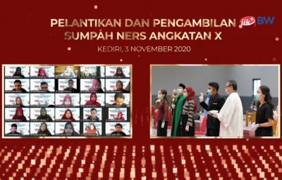 Sebanyak 37 mahasiswa program studi Profesi Ners Fakultas Kesehatan (FKes) IIK Bhakti Wiyata mengikuti prosesi "Sumpah Profesi Ners Angkatan X", Selasa (3/11). Untuk pertama kalinya, pengambilan sumpah keperawatan dilaksanakan melalui daring akibat pandemi COVID-19.