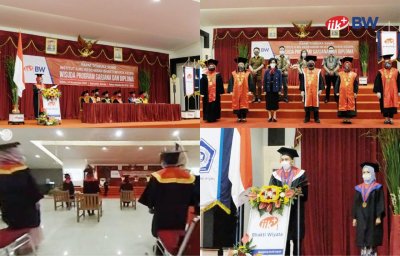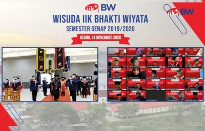 Di tengah pandemi COVID-19 yang belum berakhir, suasana pelaksanaan wisuda yang biasanya ramai dengan selebrasi dari orang tua maupun kerabat para wisudawan/i menjadi berubah. Akibat pandemi COVID-19 IIK BW untuk pertama kalinya menggelar prosesi wisuda semester genap TA 2019/2020 secara daring (dalam jaringan), Sabtu (14/11/2020). Meskipun digelar secara daring, wisuda IIK BW berlangsung meriah karena disiarkan secara live menggunakan teknologi virtual reality (VR) 360 sehingga para wisudawan/i tetap dapat merasakan suasana wisuda seperti biasa. Wisuda kali ini IIK BW berhasil meluluskan 885 wisudawan/idari empat fakultas yang ada di IIK BW yakni Fakultas Farmasi, Fakultas Kedokteran Gigi, Fakultas Kesehatan dan Fakultas Teknologi dan Manajemen Kesehatan. Kepala LLDIKTI Wilayah VII Jawa Timur, Prof. Dr. Soeprapto, DEA dalam sambutannya secara daring memberikan pesan yang harus dikuasi oleh lulusan IIK BW. "Kalian harus memiliki kemampuan komunikasi yang baik, kejujuran, kemampuan bekerjasama, kemampuan intrapersonal , etika, motivasi/inisiatif, kemampuan beradaptasi, kepercayaan diri dan jiwa kepemimpinan. Apalagi saat ini di tengah pandemi, Jika kalian menguasai kemampuan tersebut, kesuksesan akan berpihak kepada Anda. Sekali lagi selamat kepada para wisudawan/i semoga kesuksesan menyertai Anda semua," katanya.