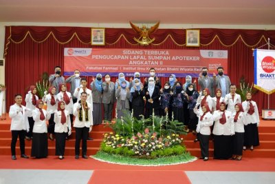 Fakultas Farmasi IIK Bhakti Wiyata (IIK Bhakta) menggelar acara Pelantikan dan Pengucapan Lafal Sumpah Apoteker Angkatan II di Graha Bhakta Hall, Sabtu (27/11/2021). Acara ini dihadiri oleh para Apoteker baru beserta keluarga dan kerabat, dosen serta pimpinan fakultas serta tamu undangan. Acara Sumpah Apoteker dimulai pada pukul 09:00 WIB, dibuka langsung oleh Dekan Fakultas Farmasi IIK Bhakta, apt. Evi Kurniawati, M.Farm dilanjutkan pembacaan surat keputusan kelulusan Apoteker baru oleh apt. Tri Puji Lestari, M.Farm selaku ketua program studi profesi apoteker IIK Bhakta. Pada periode ini Fakultas Farmasi IIK Bhakta berhasil meluluskan 15 Apoteker baru dengan lulusan terbaik diraih oleh apt. Zezen Agus Purnomo, S.Farm. Hadir dalam acara ini perwakilan dari Komite Farmasi Nasional, Pengurus Pusat Ikatan Apoteker Indonesia, Badan Pengawas Obat dan Makanan, serta Pengurus Daerah Ikatan Apoteker Indonesia (IAI) Kota dan Kabupaten Kediri. Selamat untuk para Apoteker baru semoga menjadi lulusan yang bermanfaat dan berdaya saing.