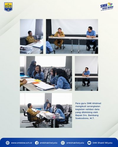 Selasa, 8 November 2022 bertempat di ruang Cakra, SMK Bhakta dan SMK TI Pelita Nusantara menerima kunjungan Bapak Drs. Bambang Soekodiono, M.T selaku pengawas SMK dari Cabang Dinas Pendidikan Wilayah Kota Kediri. Tujuan kunjungan beliau ke SMK ialah untuk melakukan verifikasi dan validasi data siswa untuk persiapan ujian satuan pendidikan tahun ajaran 2022/2023. Verifikasi dan Validasi Data Individu Peserta Didik dimaksudkan untuk memastikan kebenaran data peserta didik tingkat akhir. Seluruh peserta didik yang akan mengikuti ujian akan dilakukan pengecekan data pribadi untuk memastikan bahwa tidak ada yang keliru dan melengkapi data yang dirasa kurang lengkap. Dalam kegiatan ini turut hadir Bapak Kepala Sekolah SMK TI Pelita Nusantara yaitu Bapak Trio Sumarsono dan seluruh jajaran struktural SMK Bhakta dan SMK TI Pelita Nusantara