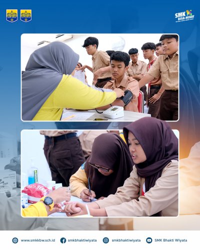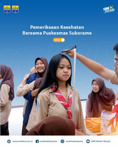 25 September 2024 kemarin seluruh siswa SMK baik dari SMK Kesehatan Bhakti Wiyata maupun SMK TI Pelita Nusantara mengikuti kegiatan pemeriksaan kesehatan bersama Puskesmas Sukorame Kediri. Pemeriksaan kesehatan berkala kepada siswa sekolah merupakan kegiatan pemeriksaan kesehatan dasar yang bertujuan untuk mengetahui status kesehatan siswa sebagai salah satu upaya deteksi dini jika siswa memiliki masalah kesehatan. Apabila ditemukan suatu masalah kesehatan yang membutuhkan penanganan lebih lanjut, maka tindakan lanjut dari pemeriksaan kesehatan ini adalah dengan melakukan rujukan peserta didik ke Puskesmas Sukorame. Kegiatan diharapkan dapat menumbuhkan kesadaran peserta didik sejak dini cara hidup bersih dan sehat yang dapat dimulai dari lingkungan sekolah dan dapat di terapkan dimana pun mereka berada. Pemeriksaan kesehatan berkala yang dilakukan meliputi pemeriksaan kesehatan gigi dan mulut, kebersihan telinga, rambut dan kuku, pemeriksaan buta warna, pengukuran tinggi dan berat badan, dan pengukuran tekanan darah.