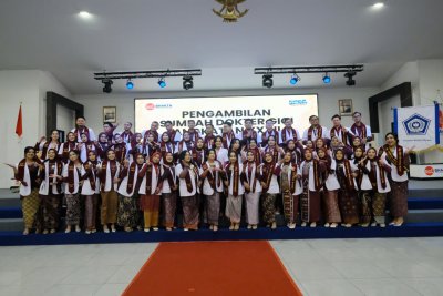 Fakultas Kedokteran Gigi IIK Bhakti Wiyata (FKG IIK Bhakta) Kediri menggelar acara Pengambilan Sumpah Dokter Gigi untuk Angkatan XXXII, yang menandai momen penting bagi 53 lulusan dokter gigi baru, Selasa, (26/11/2024). Prosesi Pengambilan Sumpah dokter gigi dimulai dengan prosesi yang diawali dengan pembacaan sumpah dokter gigi oleh Dekan FKG IIK Bhakta drg. Afrida Nurmalasari, M.Kes., yang kemudian diikuti oleh seluruh peserta. Dalam sumpah tersebut, para dokter gigi baru berjanji untuk mengutamakan keselamatan dan kesehatan pasien, menjalankan profesinya dengan penuh tanggung jawab, serta menjaga martabat profesi kedokteran gigi di mana pun mereka berada. Sumpah ini menjadi simbol dari komitmen mereka terhadap etika profesi, keahlian, dan pelayanan yang terbaik bagi masyarakat. Rektor IIK Bhakta Prof. Dr. apt. Muhamad Zainuddin, dalam sambutannya, mengungkapkan kebanggaannya atas pencapaian para lulusan. Beliau juga menekankan pentingnya kompetensi dan integritas dalam menjalankan tugas sebagai dokter gigi, serta memberikan pesan agar para lulusan senantiasa mengedepankan nilai-nilai kemanusiaan dalam memberikan layanan kesehatan kepada masyarakat. “Keberagaman asal lulusan ini menjadi salah satu kebanggaan, karena menunjukkan bahwa IIK Bhakta Kediri tidak hanya dipercaya oleh masyarakat Indonesia, tetapi juga oleh negara tetangga seperti Timor Leste,” tuturnya. Para dokter gigi baru ini diharapkan dapat berkontribusi tidak hanya dalam meningkatkan layanan kesehatan gigi di Indonesia, tetapi juga dapat membawa dampak positif bagi masyarakat di luar negeri.