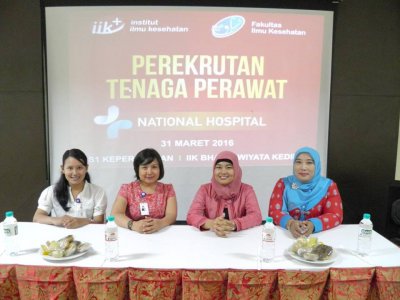 Bagi para siswa SMK Kesehatan Bhakti Wiyata (SMKKBW) dan mahasiswa Institut Ilmu Kesehatan (IIK), masa depan pasca kelulusan memang harus direncanakan. Oleh sebab itu, IIK dan SMKKBW terus berupaya untuk berkembang dan maju, salah satunya ialah memperbanyak kerjasama dengan perusahaan dan rumah sakit agar dapat menjadi tempat pijakan bagi para lulusan IIK dan SMKKBW. Beberapa perusahaan dan rumah sakit yang menjalin kerjasama dengan IIK dan SMKKBW, diantaranya: 1. PT Dexa Group PT. Dexa Group yang bergerak di bidang farmasi mengunjungi IIK Bhakti Wiyata dalam rangka memberikan seminar dan rekrutmen untuk mahasiswa tingkat akhir D3 dan S1 Farmasi pada hari Jumat (10/6). Seminar bertemakan “Unlock Your Potential, Prepare Your Right Career” ini diadakan di Lab Audio Visual. Seminar ini memberikan banyak pengetahuan seputar perencanaan karir dalam menghadapi MEA (Masyarakat Ekonomi Asean). Selain itu, PT. Dexa Group juga mengadakan psikotes untuk para mahasiswa yang berminat bergabung menjadi Sales Promotion. 2. PT Perintis Pelayanan Paripurna Open Recruitmen Tenaga Kesehatan dari PT Perintis Pelayanan Paripurna diperuntukkan bagi mahasiswa S1 dan D3 Farmasi IIK. Posisi yang ditawarkan saat itu adalah Store Manager dari Apotik Century. Kegiatan yang berlangsung hari Sabtu (28/5) ini meliputi tahap psikotest dan selanjutnya akan ditentukan pihak rekrutmen setelah dinyatakan lolos psikotes. 3. Job Fair IIK dengan Beberapa Perusahaan Sabtu (14/05), IIK menggelar acara “Job fair: Leads You to Success” di Graha IIK lantai 4. Acara ini bertujuan untuk memaparkan etika melamar kerja, menyusun surat lamaran kerja, CV yang baik serta proses rekrutmen yang dilakukan secara langsung. Tujuh perusahaan turut berpartisipasi dalam acara ini, yaitu Bernofarm Pharmaceutical Company, Rumah Sakit Wilujeng, Viva Generik, PT Vitapharm, Pelengkap Medical Center, Rumah Sakit Aulia, dan VZ Skin Care. 4. National Hospital Surabaya Kamis, (31/03), National Hospital Surabaya mengadakan perekrutan tenaga perawat dari S1 Keperawatan IIK. Agenda dalam perekrutan ini meliputi tes tulis (psikotes) dan tahap wawancara. Pelamar yang mendaftar berjumlah 30 orang berasal dari alumni hingga mahasiswa S1 Keperawatan yang sedang menempuh profesi. Peserta yang lolos dalam tahap psikotes berjumlah 17 orang dan dilanjutkan pada sesi wawancara. Setelah dinyatakan lolos wawancara, maka akan dilanjutkan tahap seleksi di National Hospital.